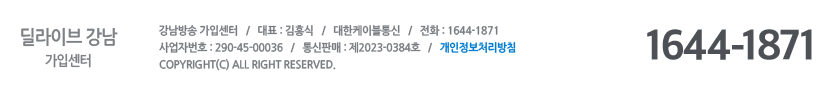 딜라이브의 상품가입 상담신청을 받기 위해 개인정보를 수집/이용하는 것에 동의 합니다. (강남케이블방송)