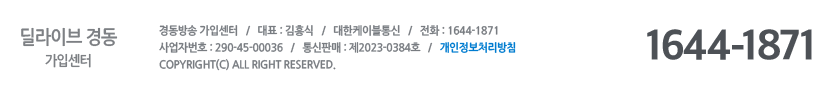 딜라이브의 상품가입 상담신청을 받기 위해 개인정보를 수집/이용하는 것에 동의 합니다. (경동케이블방송)