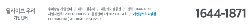 딜라이브의 상품가입 상담신청을 받기 위해 개인정보를 수집/이용하는 것에 동의 합니다. (우리케이블방송)